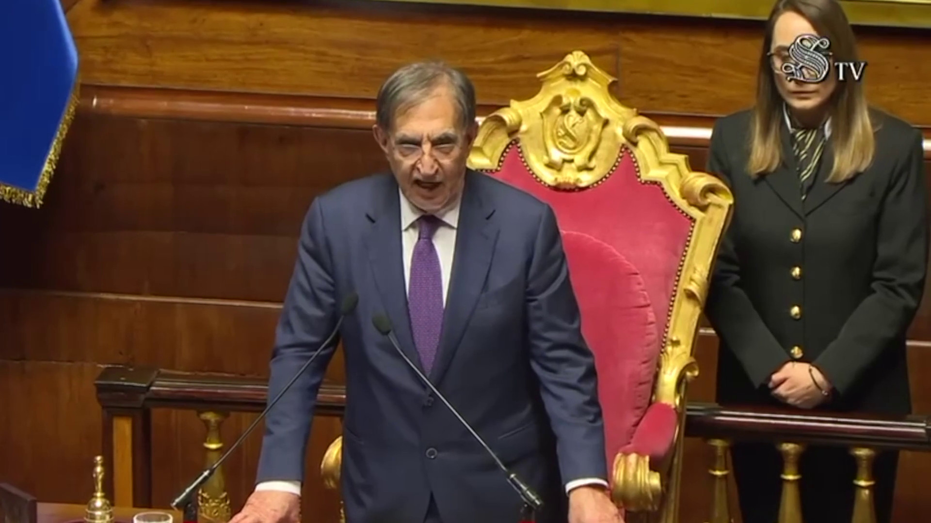 ROMA (ITALPRESS) – “Nel respingere e condannare con fermezza – sia nel metodo che nel merito – le inaccettabili parole di Maria Zakharova è altresì sentito e doveroso da parte mia rinnovare piena solidarietà e vicinanza al presidente della Repubblica, custode dei valori democratici della nostra Patria”. Così il presidente del Senato, Ignazio La Russa in apertura dei lavori in Aula al Senato. ads/mrv (Fonte video: Senato)