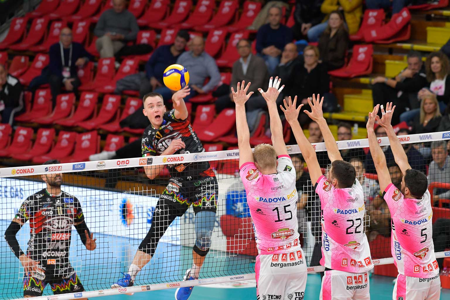 Perugia sfrutta un ispirato Giannelli (anche 6 punti per il regista bianconero) che manda la propria squadra al 51% di attacco totale e proprio l’attacco è il fondamentale dove Perugia fa la differenza con Padova ferma al 32%.