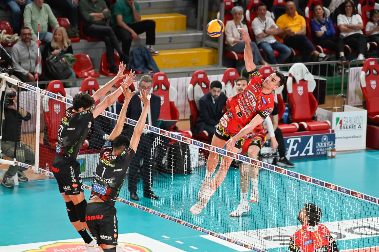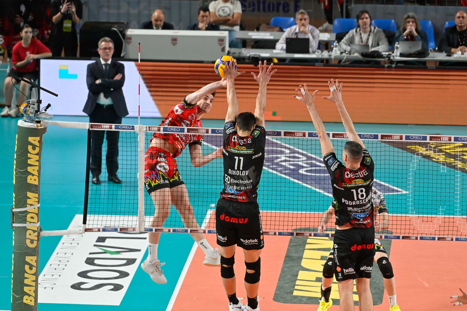 Miniset di spareggio che si apre con i tre ace consecutivi dell’ucraino, che spingono i Block Devils. I padroni di casa provano a rientrare in gara, ma Perugia alza il muro e chiude 15-10 con l’attacco vincente di Ben Tara.