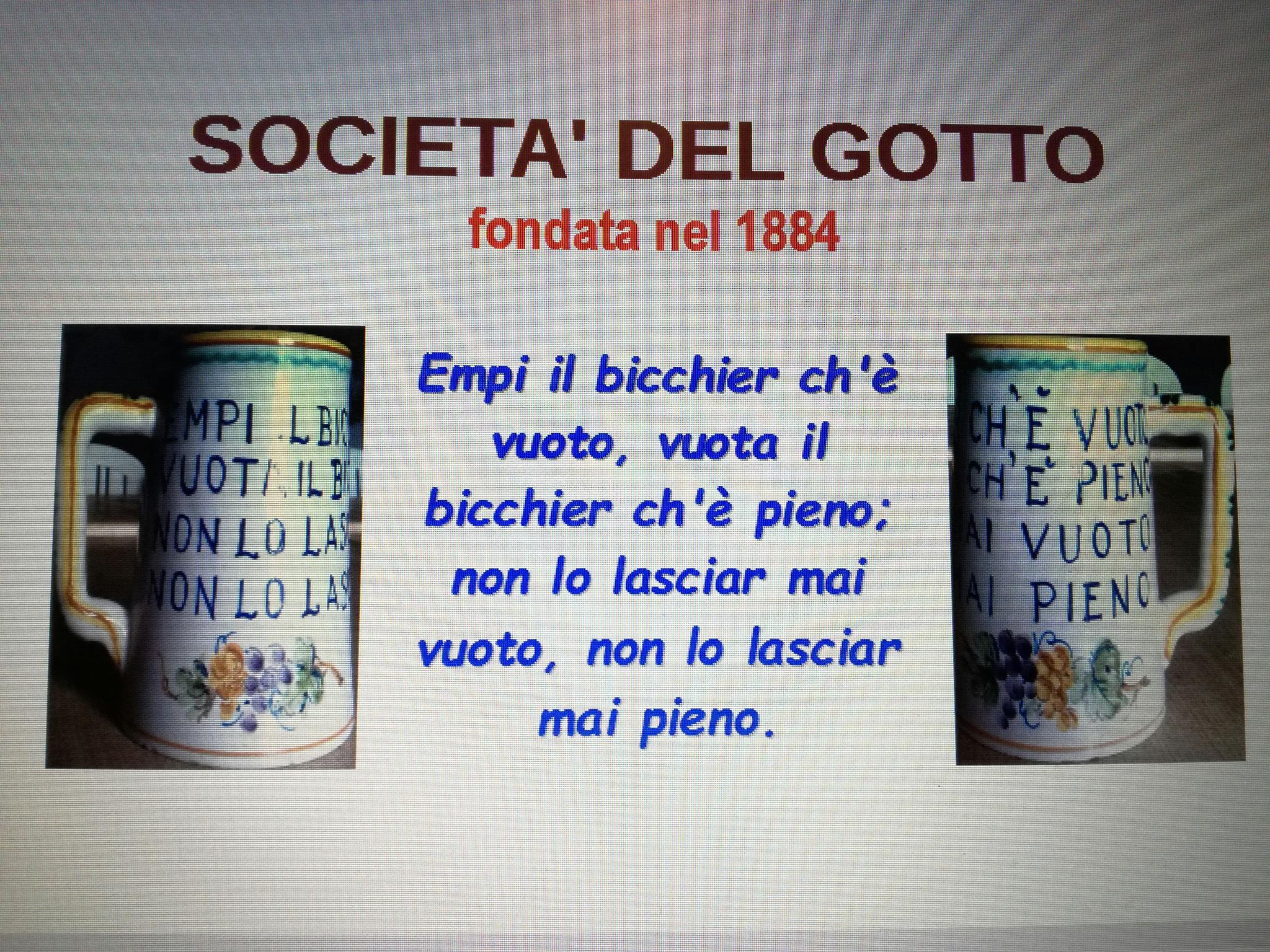 E’ venuto, quindi, quasi spontaneo, identificare questa associazione di amici con il tozzo bicchiere in coccio che veniva usato nelle osterie umbre : il Gotto.