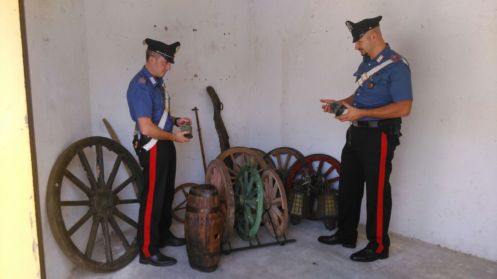 Nuovi sviluppi sulle indagini dei Carabinieri della Stazione di Ferentillo conseguenti all’arresto di qualche giorno fa di tre soggetti responsabili del furto della campana della Chiesa “Madonna del Rosario” di Terria di Ferentillo. I militari hanno individuato e denunciato a piede libero per ricettazione un 80enne di Montefranco nel cui negozio hanno rinvenuto nuova refurtiva parte della quale già riconosciuta come provento di tre distinti furti commessi in zona. L’esito della perquisizione eseguita ha confermato l’ipotesi investigativa visto che i Carabinieri hanno trovato all’interno del negozio una serie di oggetti di antiquariato che sarebbero stati venduti al titolare ad un prezzo irrisorio proprio da uno dei tre arrestati. I pezzi sequestrati, tutti oggetti antichi in ferro e legno, consistono in alcune ruote per carro di varie dimensioni, un aratro, un assale, un giogo ed una morsa per buoi, una piccola botte, una padella, delle lanterne ed alcune campane di piccole dimensioni. Alcuni di questi sono già stati restituiti ai legittimi proprietari in quanto riconosciuti come refurtiva di recenti furti tutti commessi in zona ai danni di un agriturismo e di un’abitazione di campagna nonché, per quanto riguarda una delle campane, all’interno della chiesa di Castellombasso di Ferentillo.