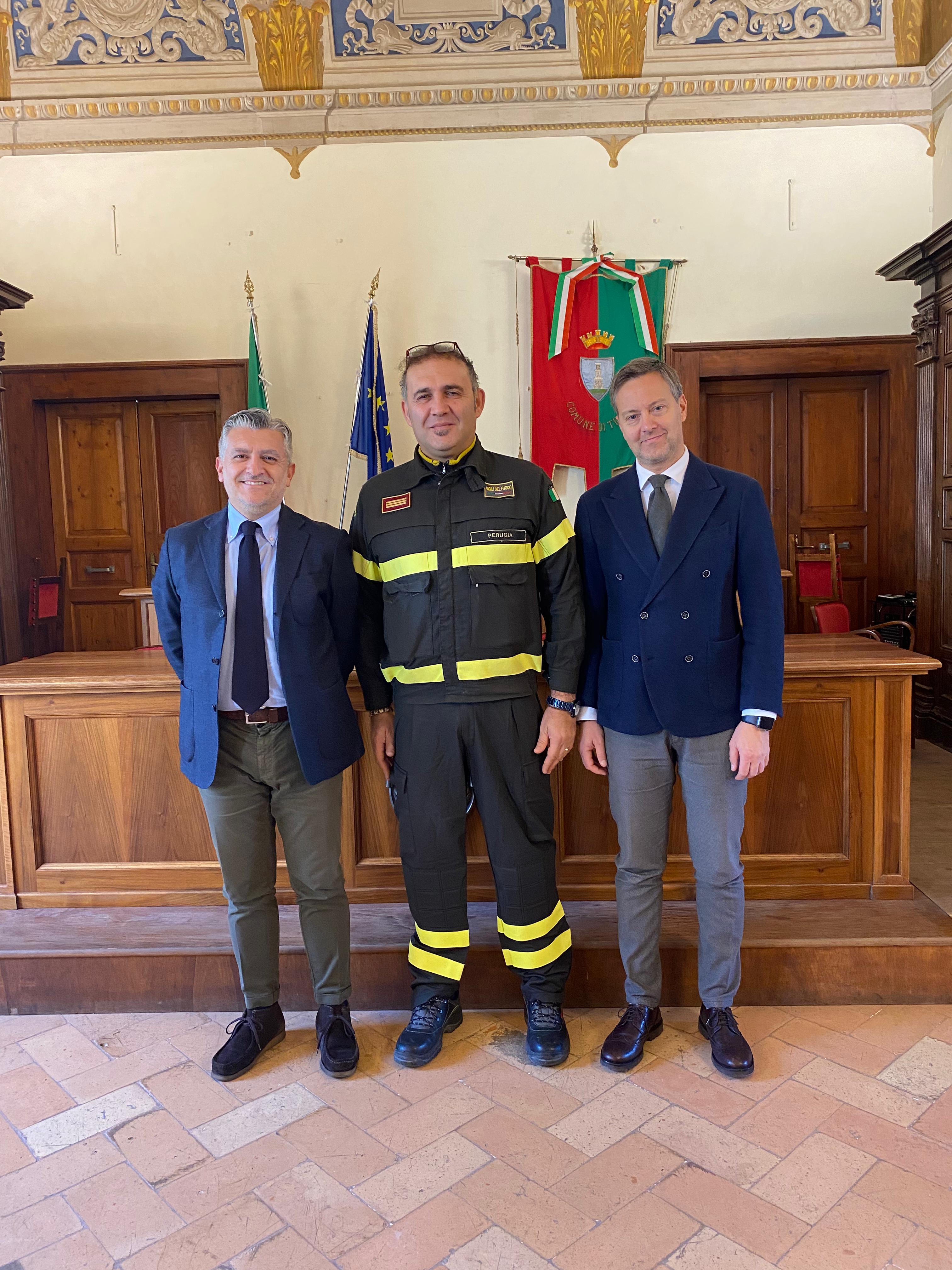 Il sindaco di Trevi Ferdinando Gemma e l’assessore Mirko Menicacci hanno incontrato il capo distaccamento del Corpo Nazionale dei Vigili del Fuoco di Foligno, Roberto Di Arcangelo. “Un incontro importante in un’ottica di collaborazione tra Comune e Corpo Nazionale Vigili del Fuoco; serve coordinamento e conoscenza reciproca; un ringraziamento ai Vigili del Fuoco per quello che fanno ogni giorno per la comunità; possono vantare professionisti di inestimabile valore umano e tecnico” dice il Sindaco Gemma. “Serve sinergia tra istituzioni-dice l’assessore Menicacci-per la sicurezza, la prevenzione e la tutela del cittadino, per l’ambiente e per il territorio nella sua accezione più larga. La figura del Vigile del Fuoco è importante oltre che per la gestione delle emergenze, anche per la pianificazione e per la formazione”.