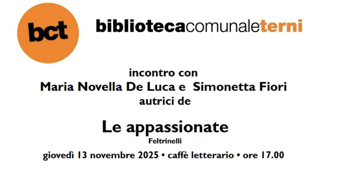 Sono storie di donne che hanno cambiato il futuro e di cui si parlerà nel caffè letterario nella biblioteca comunale BCT di Terni. L’incontro si terrà giovedì 13 novembre e sarà con Maria Novella De Luca e Simonetta Fiori le autrici di “Le appassionate” edito da Feltrinelli (2025). Il caffè letterario delle ore 17.00 vedrà anche intervenire Gabriella Luccioli, modererà Carla Arconte.