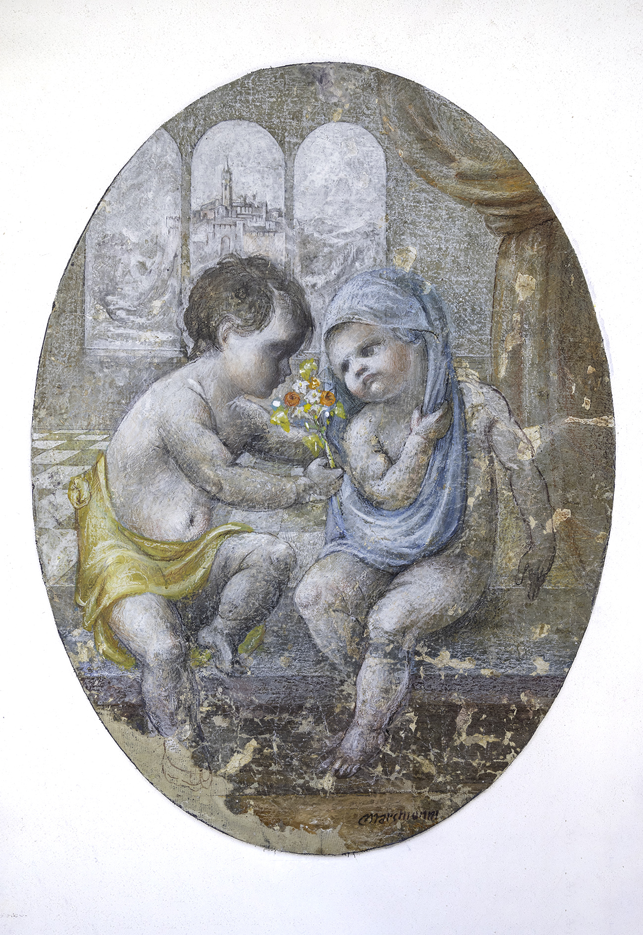 Anche quest’anno, in occasione delle Infiorate del Corpus Domini, Poste Italiane celebra l’evento con uno speciale annullo filatelico su cartolina a tiratura limitata, divenuto ormai una tradizione consolidata per la città di Spello. La cartolina è realizzata dal maestro Elvio Marchionni, artista spellano tra i più significativi del panorama artistico contemporaneo. L’immagine, intitolata “Annunciazione con i fiori – Infiorate di Spello 2025”, richiama le suggestioni di un affresco antico, reinterpretando l’iconografia cristiana dell’Annunciazione in chiave simbolica e floreale. I putti e i fiori sostituiscono le figure sacre, rendendo omaggio alle infiorate e al paesaggio umbro, forse proprio al borgo di Spello.