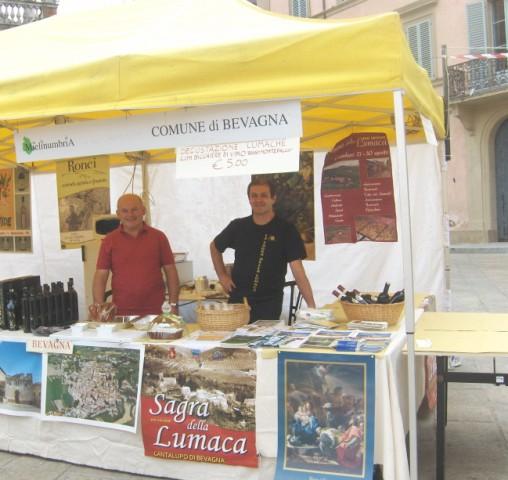 “Nel 2008 – ricorda l'assessore Franco Palini – riscuotemmo un grandissimo successo con la porchetta della ditta Cariani. Quest'anno abbiamo pensato di diversificare i prodotti enogastronomici da proporre all'interno del nostro stand. E lo abbiamo fatto chiedendo la disponibilità della Pro Loco di Cantalupo-Castelbuono che ha subito messo a disposizione, a proprie spese, le lumache e il Rosso di Montefalco delle cantine Dionigi e Terre dei Trinci”.