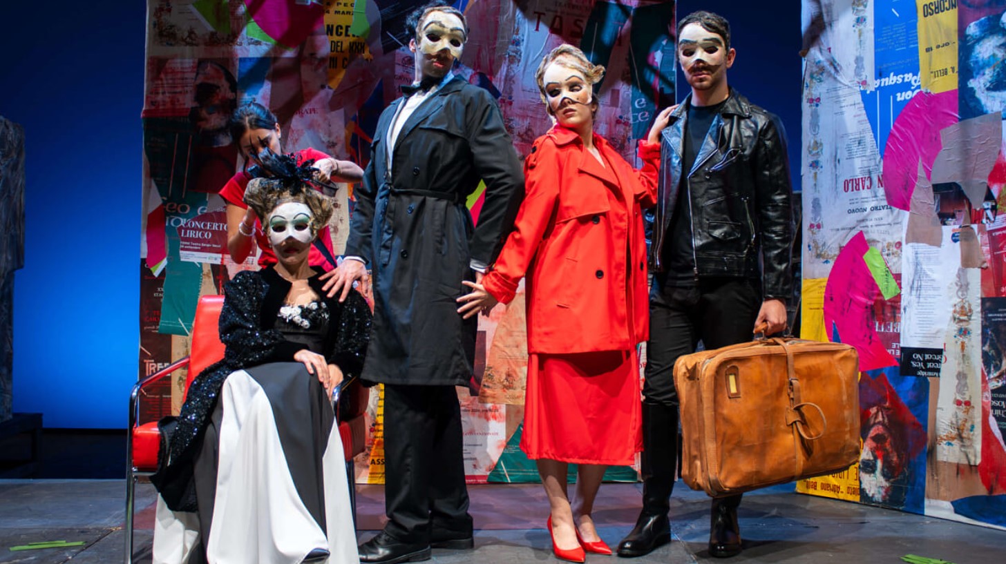 Se ci divertiva fino allo sghignazzo analizzare le regie “geometriche” del trittico mozartiano (Così fan tutte, Le Nozze di Figaro e Don Giovanni) del compianto M° Giorgio Ferrara –era compiaciuto fino allo sfoggio, quando ne parlava in conferenza stampa– nel caso della messa in scena spoletina de Le Nozze, prendiamo atto della regia all’Ambaradam del M° Brockhaus. Non ci sono confini teatrali di spazio e scena, tutti fanno tutto attraversando la platea e cantando persino alle spalle del maestro Angius che da gli attacchi a rovescio. Si entra e si esce dal palcoscenico come si potrebbe fare con la veranda del giardino di casa. E sempre con le sediacce sospese e minacciose per 4 atti di spettacolo. Il racconto distopico di una giornata di ordinaria triangolazione amorosa settecentesca, dove tutti sono qualcosa d’altro da ciò che dicono di essere, con maschere e travestimenti al limite della teoria di genere.