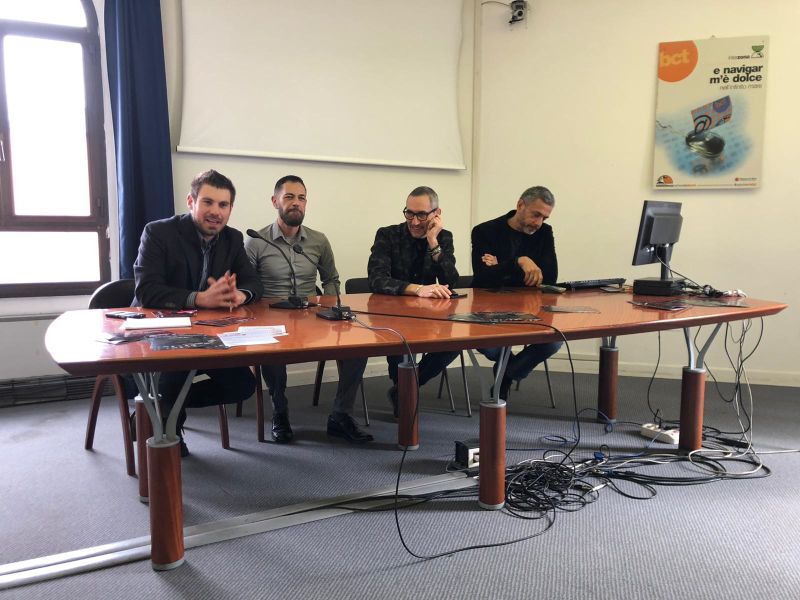 Al tavolo il maestro Gianni Neri della Vocal Master (produttore dello spettacolo), il registra dell’opera, Massimo Zannola e l’attore Francesco Antimiani (colui che interpreterà Valentino)