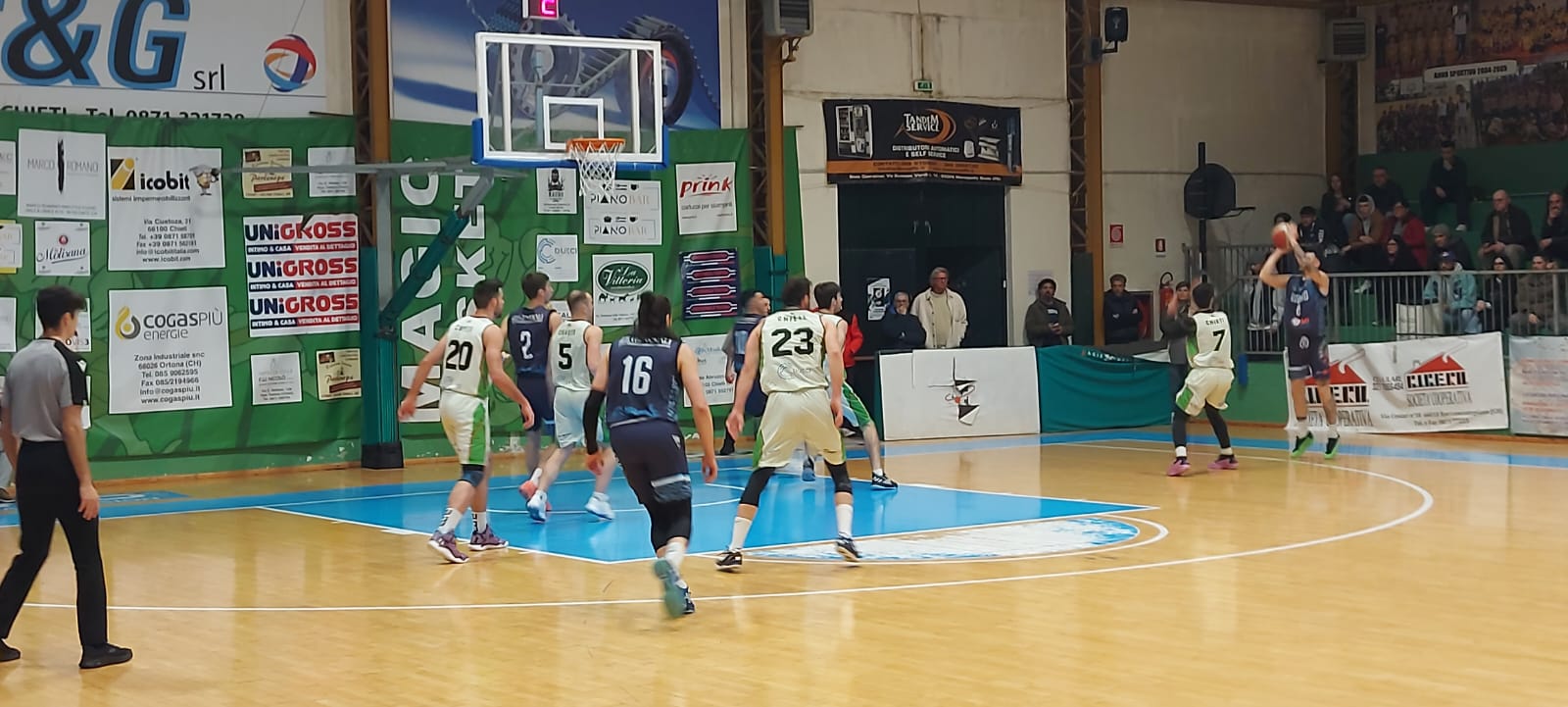 Ancora una volta gli eugubini si fanno sorprendere nell’approccio alla gara: partono bene, poi subiscono un piccolo parziale dai padroni di casa in chiusura di primo quarto, quindi il BKG si rifà sotto ma all’intervallo lungo sono ancora i teatini a comandare per 35-27 sul quale si va a riposo. Come visto nelle partite precedenti, i biancoblu reagiscono nella ripresa e, all’uscita dagli spogliatoi, serrano le fila in difesa (solo 8 i punti dei neroverdi nel terzo quarto) e alzano la media offensiva grazie anche ai cinque punti di fila messi a segno dall’ex Razzi a inizio periodo: il 43 pari a 10’ dalla fine consegna un ultimo quarto ad alta intensità. La stanchezza prende il sopravvento tra gli abruzzesi, i ragazzi di coach Cecchini ne approfittano e chiudono definitivamente i conti sul 55-66. Guardando il tabellino risaltano sicuramente i soliti Di Simone e Rombi (14) e Razzi (13), ma è da sottolineare anche la prestazione di Cecchini, che pur segnando zero punti ha messo in campo una prestazione difensiva che conferma la crescita del cestista eugubino classe 2003.