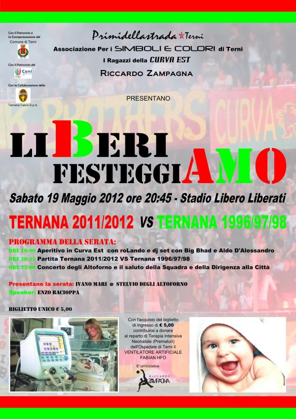 Da ieri è iniziata la vendita dei biglietti per la grande festa organizzata dai tifosi per la Ternana che si svolgerà il 19 maggio presso il Liberati. L'evento “Liberi Festeggiamo” ha uno scopo benefico e il ricavato andrà in beneficenza (leggi qui). Ecco i punti vendita: