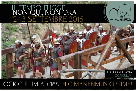 Le atmosfere dell’antica Roma rivivono anche quest’anno nella quarta edizione di “Ocricolum AD 168” in programma il 12 e 13 settembre al parco archeologico di Otricoli. Organizzato dall’associazione culturale Ocricolum, in collaborazione con Comune e pro loco, l’edizione 2015 sarà all’insegna della riscoperta della storia, dell’approfondimento archeologico e della gastronomia locale. Un viaggio a ritroso nel tempo fino all’epoca dell’imperatore Marco Aurelio e un’occasione per rivivere gli ambienti, le atmosfere e la vita di un municipio romano del II° sec d.C. All’ingresso del parco si potranno cambiare le monete e poi giungere fino alle sponde del Tevere dove, grazie alla ricostruzione dell’antico “Porto dell’Olio”, si potranno rivivere i momenti di vita di un approdo fluviale con imbarcazioni, magazzini e taverne che serviranno mulsum e pietanze del tempo. “Le presenze in questi ultimi anni sono state notevoli – commenta il vice sindaco Cristiano Ceccotti – grazie anche ad Ocricolum AD 168, il parco archeologico è diventato una tappa fondamentale nella filiera turistica regionale”. Ceccotti sottolinea anche l’impegno dei volontari. “In un momento di particolare difficoltà economica – dichiara infatti – il volontariato e l’associazionismo rappresentano un elemento fondamentale perché il turismo nel nostro territorio cresca ancora di più e venga diffusa non solo cultura ma anche consapevolezza e importanza della nostra storia all’interno della comunità locale”.