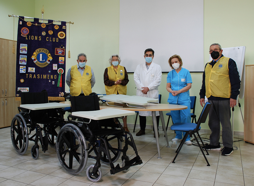 La consegna delle carrozzine e dei nuovi tavoli è stata effettuata da Maria Lucia Perego, Aldo Covarelli, Umberto Mancini e Bruno e Isolani Capanna, in rappresentanza del Lions.