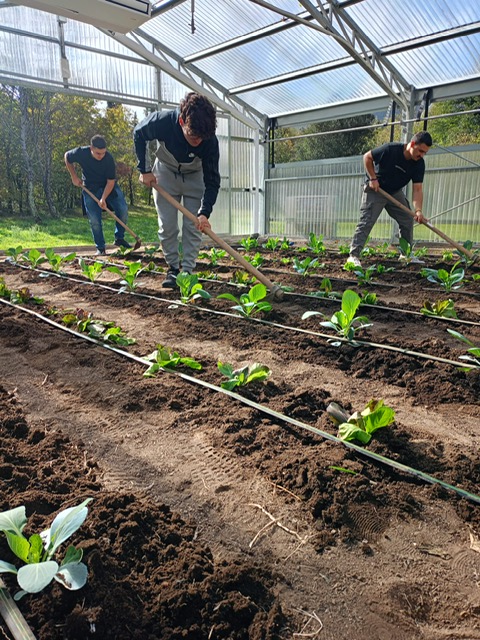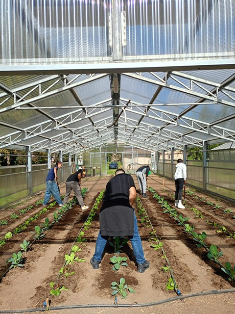 Non meno impegnativi i percorsi per la cura del frutteto, delle aree seminative (fave e piselli) e delle serre: in quella grande si coltivano ortaggi quali cavoli, radicchio, spinaci, bietole, zucchine, ecc.; quella piccola è destinata alla semina e propagazione di colture su cassoni riscaldati di colture orticole e floricole, talee di colture floricole e arboree.