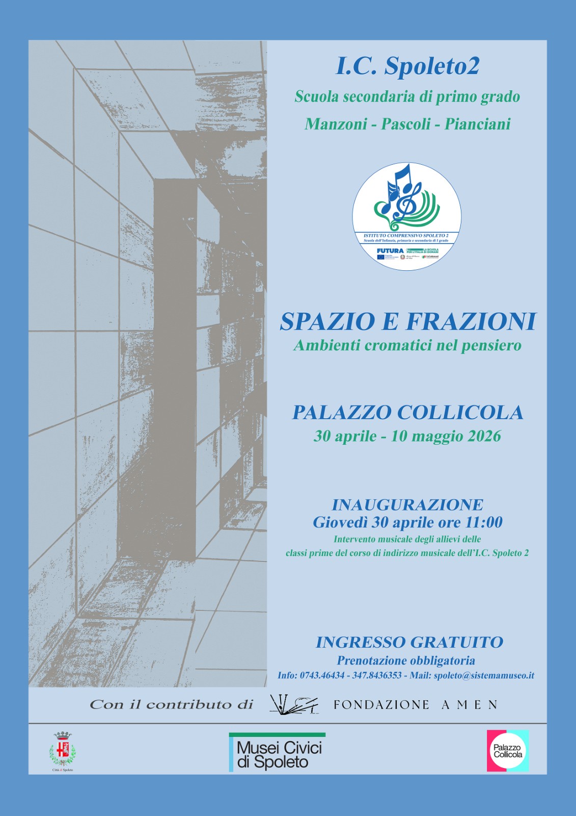 Il progetto educativo, promosso dall’Istituto Comprensivo Spoleto 2 per l’anno scolastico 2025/2026, culminerà in una mostra aperta al pubblico dal 30 aprile al 10 maggio presso Palazzo Collicola Arti Visive.