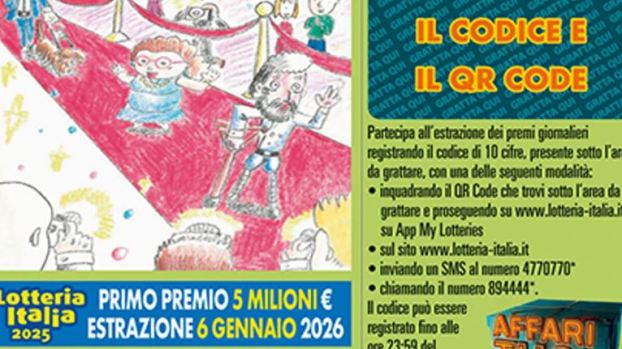 Attesa per l’estrazione dei biglietti che si assegneranno i premi maggiori della Lotteria Italia, sino a quello da 5 milioni di euro. Estrazione abbinata alla trasmissione “Affari Tuoi”, condotta da Stefano De Martino, in onda nell’edizione speciale dalle 20:35, su Rai 1.