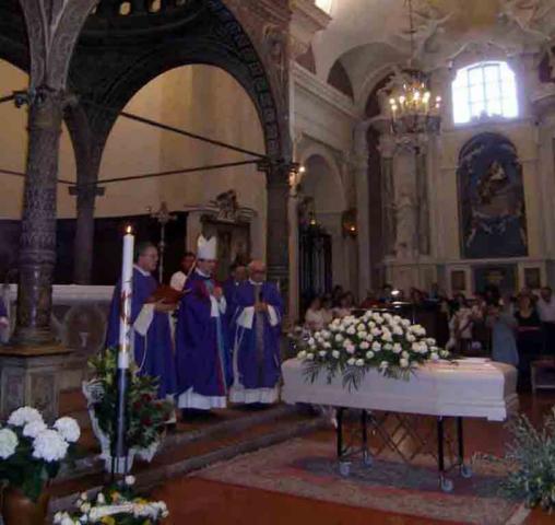 La morte, “comune eredità di tutti gli uomini”, anche quando non giunge improvvisa si configura sempre come un ladro che compie il furto dell'opera d'arte più preziosa, quella della vita. Dinanzi al mistero della morte il silenzio s'impone, e tuttavia la fede in Cristo crocifisso e risorto ci autorizza a romperlo con il canto dell'Alleluia. La morte di una persona cara, sebbene abbia la forza di velare la gioia pasquale, non ha il potere di oscurare la luce del Risorto, poiché il Signore “ha imposto alla morte un limite invalicabile”. La Risurrezione di Cristo, “Agnello immolato”, ha reso “straniera” la morte, che non sa e non può rispondere all'inquietante interrogativo che Paolo le rivolge: “Dov'è, o morte la tua vittoria? Dov'è, o morte il tuo pungiglione?” (1Cor 15,55). Difatti, Cristo Signore “ha vinto la morte, ha ingoiato la morte, ha annientato la morte, ha annullato la morte, ha spezzato i vincoli della morte, ha eliminato la morte per sempre”. La fede è luce accesa e alimentata dalla Pasqua di Cristo, che “ha distrutto la morte e rinnovato la vita”. Sebbene con la morte si compia il nostro “trasferimento” nel Regno dei cieli, essa, arrivando, compie un “rapimento”, che oggi ha strappato all'affetto dei parenti e degli amici il maestro Norberto, il quale nella sua poliedrica attività ha affidato all'espressione artistica il compito di tradurre la ricchezza del proprio mondo interiore, consapevole com'era che l'arte si configura come linguaggio universale della bellezza, capace di unire fra loro gli uomini e di portarli ad alzare lo sguardo verso l'Alto, ad aprirsi al Bene e al Bello assoluti, che hanno la loro ultima sorgente in Dio, “splendore di bellezza”. In questo momento lasciamo da parte il desiderio, pur lecito, di passare in rassegna l'intera produzione artistica del maestro Norberto, e disponiamoci a presentare al Signore la nostra preghiera di suffragio per un fratello che, con la morte, ha firmato l'opera più impegnativa, quella che introduce nella dimora della “beatitudine, della luce e della pace”, a cui si accede attraverso lo “scrutinio” del giudizio di Dio, il “Critico d'arte” più esigente e, insieme, più indulgente. Quello di Dio è lo “scrutinio” di un Padre misericordioso, che porta alla luce non tanto le nostre azioni, quanto le intenzioni che le hanno ispirate. Egli penetra ogni cosa col suo sguardo benevolente; il suo giudizio è sempre una testimonianza d'onore e d'amore nei confronti dell'uomo. “Beatitudine, luce e pace”: questi sono i doni che il Signore riserva a coloro che lo cercano con cuore retto e sincero; “beatitudine, luce e pace”: questi sono i doni che il Signore ha preparato al nostro fratello Norberto. Egli, che amava molto la pittura e la scultura, possa contemplare in eterno l'immagine più bella: il volto “mite e festoso” di Cristo Salvatore. Le opere d'arte, pur nell'armonia delle linee e dei colori, costituiscono sempre una sorta di “negativo fotografico” del volto di Cristo Salvatore. “Gli eletti – dice il Libro dell'Apocalisse – vedranno la faccia del Signore e porteranno il suo nome sulla fronte. Non vi sarà più notte e non avranno più bisogno di luce di lampada, né di luce di sole, perché il Signore Dio li illuminerà e regneranno nei secoli dei secoli” (Ap, 22,4-5). Nel Regno di Dio splende la luce dell'Agnello immolato, che fissa con lo “smalto” dell'eternità la vita di coloro che hanno cercato il suo Volto. Il Paradiso non è una sorta di galleria di ritratti degli eletti, ma è, per così dire, la bottega del Maestro per eccellenza, il Signore, che illumina con la luce della vita coloro che lo hanno cercato con cuore retto e sincero. Il Regno dei cieli è, in un certo senso, la bottega del “divino Vasaio”, che dà il tocco definitivo, quello della gloria eterna, alla creatura umana, modellata dal “tornio” della carità. Mentre domandiamo al Signore di concedere al nostro fratello Norberto la gioia di contemplare “faccia a faccia” il suo volto “splendente come il sole”, chiediamogli di aiutarci a “tenere viva la speranza” con il respiro profondo della preghiera. “Preziosa agli occhi del Signore è la morte dei suoi fedeli”: questa professione di fede, che la liturgia esequiale ci consegna, suscita un interrogativo: che cosa ha di prezioso, davanti a Dio, la morte dei suoi fedeli? Se all'occhio umano, per quanto illuminato dalla fede, la morte appare tenebrosa, allo sguardo di Dio è preziosa! È preziosa non solo perché svela quale sia il prezzo della nostra salvezza, ma anche e soprattutto perché manifesta quanto sia inestimabile, davanti a Dio, l'offerta di chi accoglie “sorella morte” con cristiana speranza. “In Paradiso ti accompagnino gli angeli, al tuo arrivo ti accolgano i martiri, e ti conducano nella santa Gerusalemme”: queste sono le parole che la liturgia, nel giorno delle esequie di un defunto, pone sulle labbra dei fedeli. “Ti accolga – aggiunge la liturgia – il coro degli angeli, e con Lazzaro povero in terra tu possa godere il riposo eterno nel cielo”. Ti accolgano i santi della nostra terra e, in particolare, santa Chiara d'Assisi, di cui oggi celebriamo la memoria; di lei il biografo dice: “Nobile di nascita, più nobile per grazia”. La vera nobiltà è, infatti, quella della grazia divina, che conferisce “splendore di bellezza” all'uomo, a condizione che metta la “tela” della propria vita nelle mani del “divino Pittore”. “Beati quei servi che il padrone al suo ritorno troverà ancora svegli”: questa beatitudine si è compiuta per Norberto che, con il suo talento artistico, ha servito il Signore con gioia. “Mite e festoso ti appaia il volto di Cristo Salvatore”: è l'augurio, anzi, la formula di benedizione con cui la Comunità spellana, commossa e grata, ti saluta, chiedendo al Signore di farti sedere alla “tavola” del Regno – oserei dire alla
