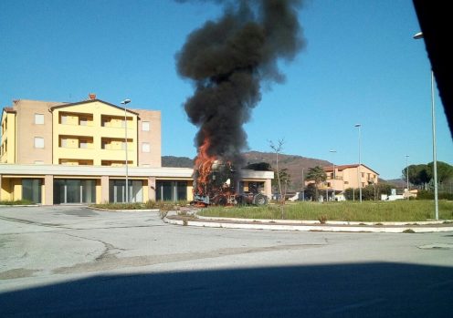 Camion in fiamme questa mattina a Magione nel parcheggio della lottizzazione nella zona dietro la coop di via Longo. Sul posto due squadre dei vigili del fuoco di Perugia e i carabinieri del radiomobile di Città della Pieve. A quanto si apprende la motrice avrebbe preso fuoco a seguito di un cortocircuito e rapidamente le fiamme l’hanno avvolta distruggendola completamente. Il camionista che ha tentato di intervenire è rimasto lievemente ferito.