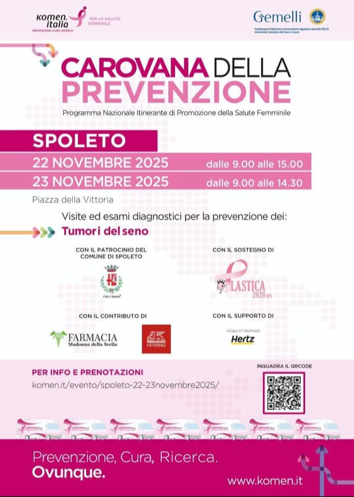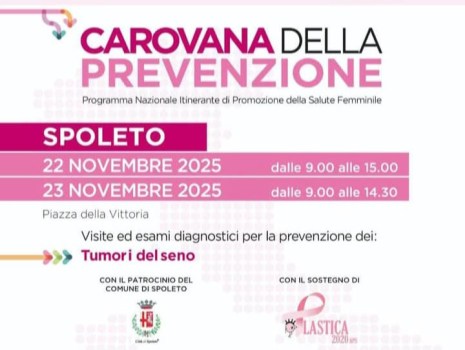 La “Carovana della prevenzione” farà tappa a Spoleto, nella centralissima Piazza della Vittoria, il prossimo 22 e 23 Novembre.