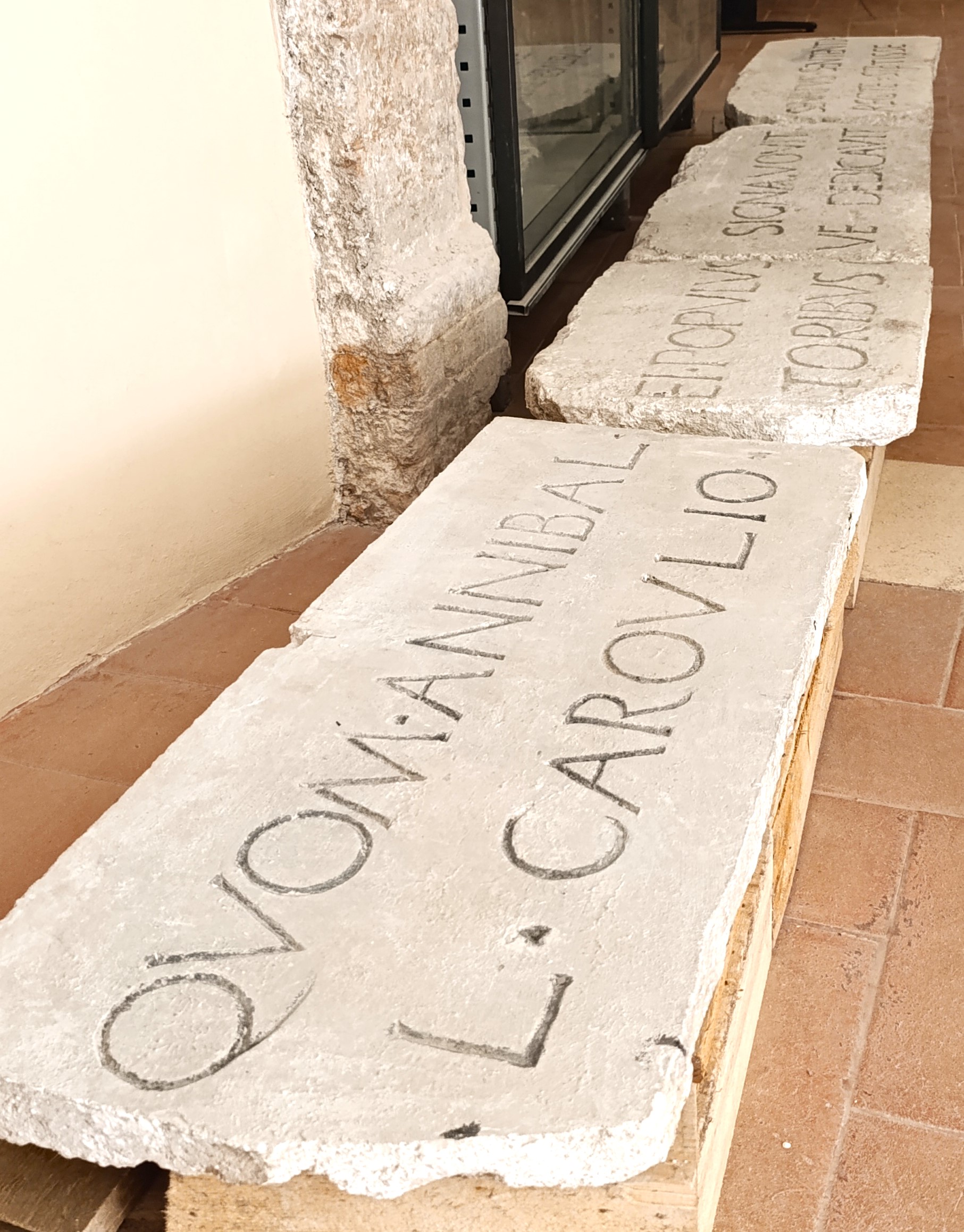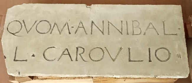 Quattro epigrafi frammentarie di epoca repubblicana, datate tra il 150 e il 140 a.c., successivamente reimpiegate nelle mura medievali della città e oggi custodite nei depositi del Museo Archeologico Nazionale e Teatro Romano (Mantr), confermerebbero il passaggio di Annibale da Spoleto nel 217 a.c., ma non solo. Il generale cartaginese avrebbe assediato la città che gli resistette strenuamente e sottratto delle statue che, circa 70 anni dopo, sarebbero state poi restituite.