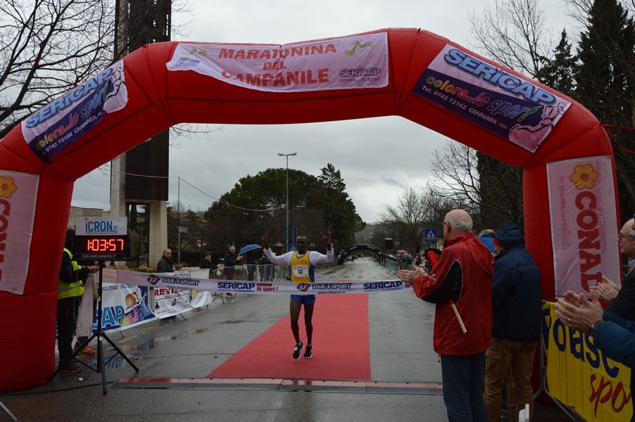 Sono stati 411 gli atleti partecipanti alla 28esima Maratonina del Campanile che, come da programma, è partita domenica 5 febbraio alle 9.30 da via Pietro Cestelllini a Ponte San Giovanni di Perugia. A tagliare per primo il traguardo, percorsi i 20 chilometri previsti dalla gara, il keniota Daniel Kipkirui Ngeno, tesserato con l’associazione Atletica Libertas Orvieto (1h03’58’’) seguito da Carmine Buccilli (1h04’’32) dell’Atletica Casone Noceto e Tarik Marhnaoui (1h05’25’’) per Romatletica Salaria village. Podio femminile tutto perugino, invece, con Costanza Martinetti (1h13’51’’) dell’atletica Libertas Arcs Cus Perugia, Silvia Tamburi (1h16’58’’) e Paola Garinei (1h19’36’’) entrambe dell’Atletica Avis Perugia. Se la pioggia ha lambito parte della gara, organizzata dall’associazione sportiva dilettantistica Podistica Volumnia Sericap, la stessa non ha scoraggiato le circa cento persone impegnate in ‘Correre per la vita’, la camminata non competitiva benefica di 6,2 chilometri coordinata dall’Associazione Avanti tutta Onlus, con in testa il suo presidente Leonardo Cenci. Parte degli introiti della maratonina saranno destinati, infatti, alla onlus perugina (la restante parte alla Caritas di Ponte San Giovanni).