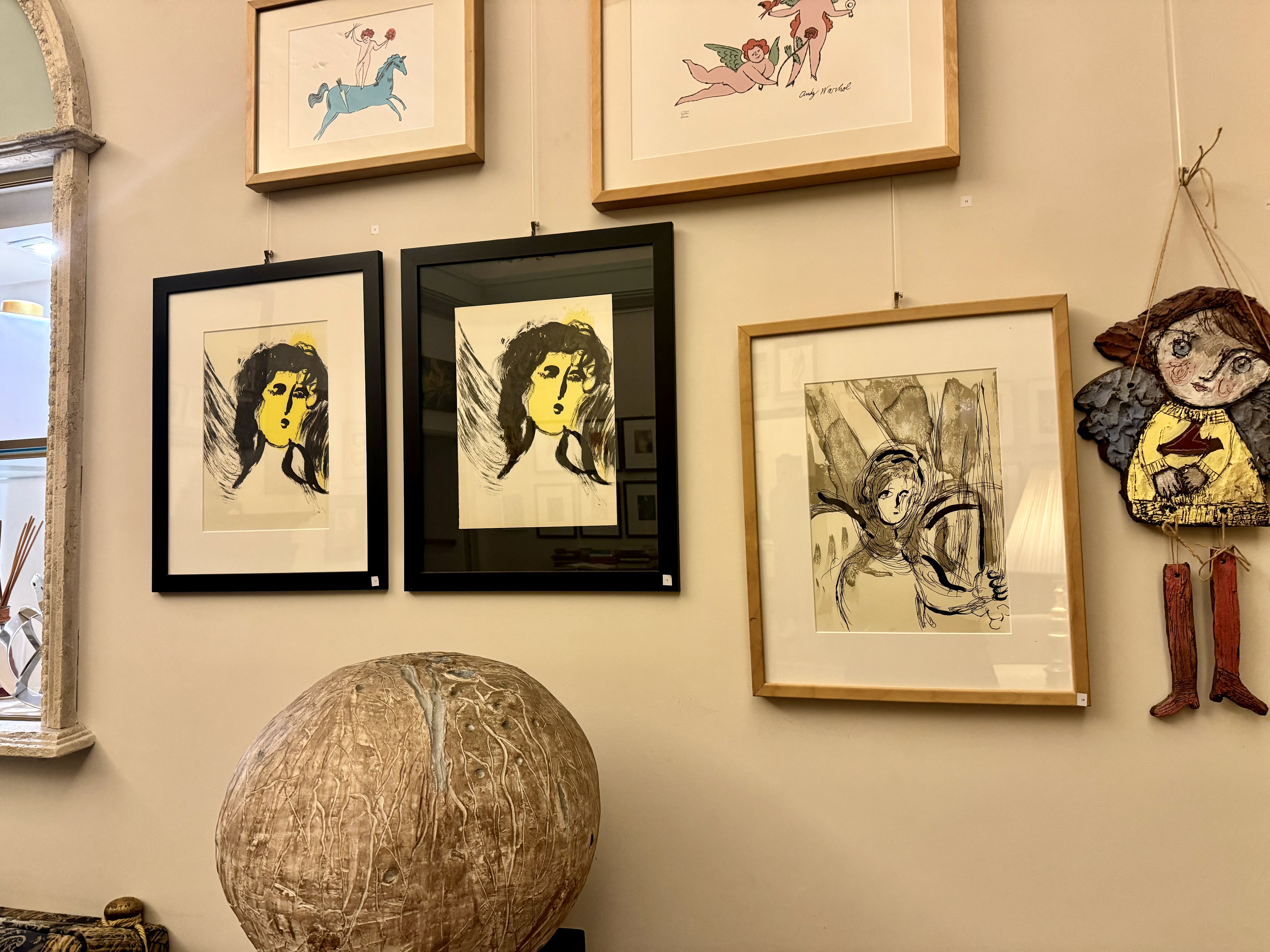 Prendendo le mosse da quelli che sono i temi più amati e ricorrenti nelle opere di Chagall, la mostra si articola in un continuo e stimolante confronto tra artisti di diversa nazionalità, emergenti ed affermati, ma anche storicizzati. Non poteva mancare Andy Warhol, proprio sulla scia della mostra appena conclusasi; I Love your Kiss Forever Forever, dedicato alle labbra più famose del XX secolo, di Marilyn Monroe, ma anche il sorriso più enigmatico di sempre, da Vinci’s Mona Lisa. Gold on White, creeranno nel visitatore uno scarto visivo che gli farà apprezzare ancora di più la distanza espressiva tra questi due impareggiabili giganti dell’arte. E a corollario decine di opere, sia pittoriche che grafiche, ma anche scultoree e ceramiche, di artisti più o meno noti al grande pubblico, tra cui le bellissime interpretazioni di Bansky dedicate alle figure angeliche e alla stessa Gioconda.