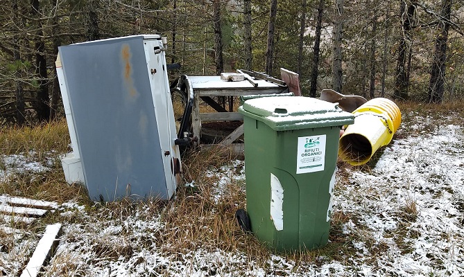 Ma non è finita qui, perché esplorando l’area si possono trovare anche una caldaia, delle persiane, una vecchia bicicletta e, come paradosso, un bidone per rifiuti organici. Tutti rifiuti molto ingombranti che, presumibilmente, sarebbero stati trasportati qui con un camion, e non in una sola volta. Il sospetto è che dietro possa esserci un’azienda che avrebbe provato (nel modo peggiore) ad evitare di pagare il corretto smaltimento di rifiuti.
