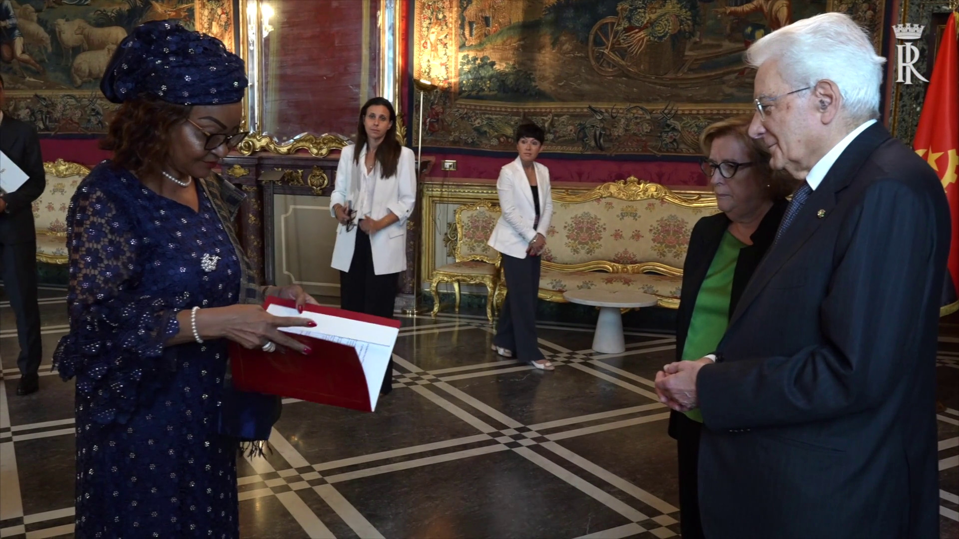ROMA (ITALPRESS) – Il Presidente della Repubblica, Sergio Mattarella, ha ricevuto nel pomeriggio al Quirinale, in separate udienze, per la presentazione delle Lettere Credenziali, i nuovi ambasciatori: S.E. Oumar Ibrahim Sidi, Repubblica del Niger; S.E. Josefa Leonel Correia Sacko, Repubblica di Angola; S.E. Junimart Girsang, Repubblica di Indonesia; S.E. Thandazile Penelope Mbuyisa, Regno di Eswatini; S.E. Corinne Brunet, Repubblica del Benin. Era presente il Vice Ministro degli Affari Esteri e della Cooperazione Internazionale, Edmondo Cirielli. mgg/gtr (Fonte video: Quirinale)