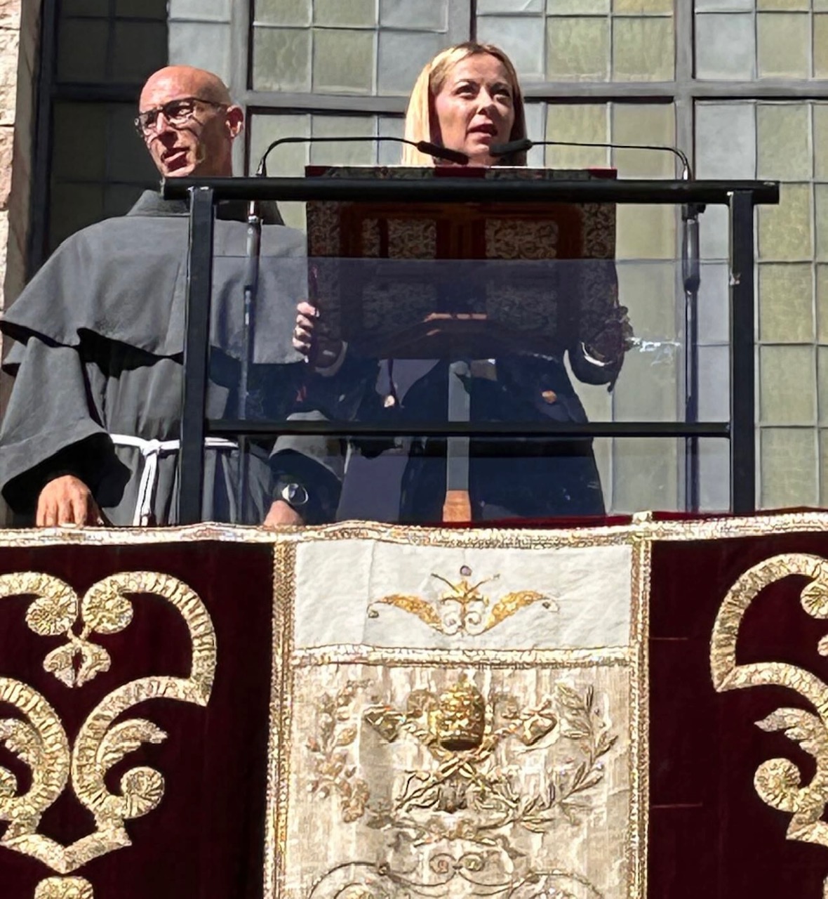 Ma soprattutto, parole quanto mai d’attualità in questi tempi segnati da conflitti, Meloni ha ricordato che San Francesco è stato un “uomo di pace e di dialogo, disarmato di tutto tranne che di fede e di mitezza”. Aggiungendo: “Ci insegna che si deve tentare di parlare con tutti”, perché “dove finisce il dialogo e si esaurisce la pazienza è lì che germoglia il seme della violenza e la guerra”. Un messaggio, ha sottolineato Meloni, oggi attualissimo, usando le parole di Papa Francesco su quella “terza guerra mondiale a pezzi che si sta consumando in modo spaventoso”.