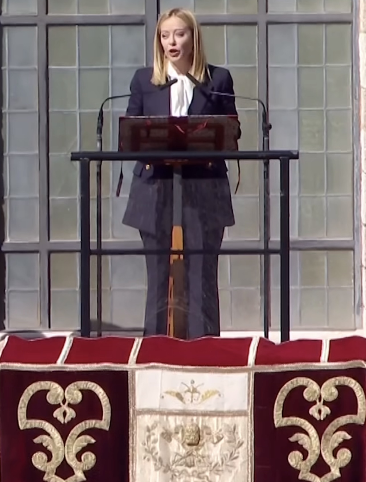 Meloni ha poi parlato degli ultimi sviluppi su quanto sta avvenendo a Gaza: “Se il piano di pace sarà accolto da Hamas si arriverebbe alla pace e al rilascio degli ostaggi”. Dicendosi “fiera”, in risposta ai contestatori, del contributo al dialogo dell’Italia, “in prima linea nel sostegno umanitario”. Perché, ha detto, gli italiani “sono costruttori di pace”.