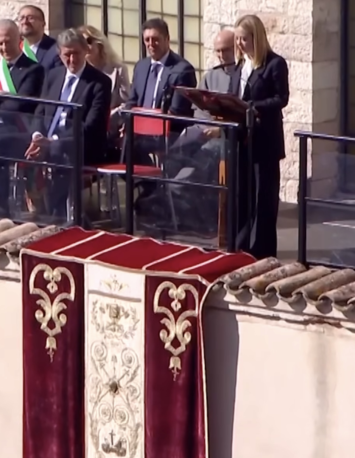Ma anche se “la pace, il dialogo e la diplomazia sembrano non vincere, né convincere”, la premier ha anche lanciato da Assisi un messaggio di speranza: “Questo scenario cupo non deve spingere alla resa”. E seguendo l’insegnamento di San Francesco ha invitato a costruire “un mattone dopo l’altro” la pace, che “non si materializza quando la si invoca”.