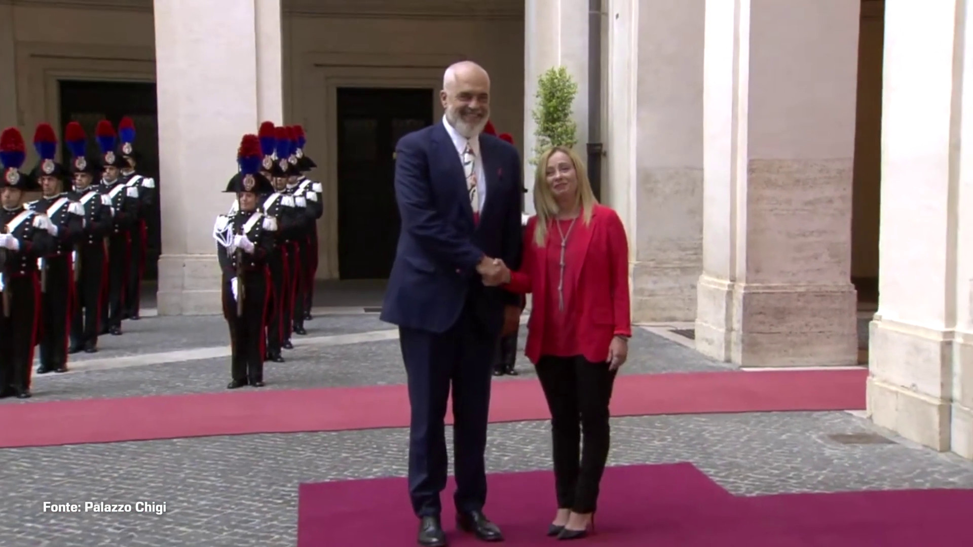 [videojs_video url="https://video.italpress.com/play/mp4/video/ZZV5"] ROMA (ITALPRESS) - Il presidente del Consiglio Giorgia Meloni ha ricevuto a Palazzo Chigi il primo ministro albanese Edi Rama. sat/gtr (Fonte video: Palazzo Chigi)