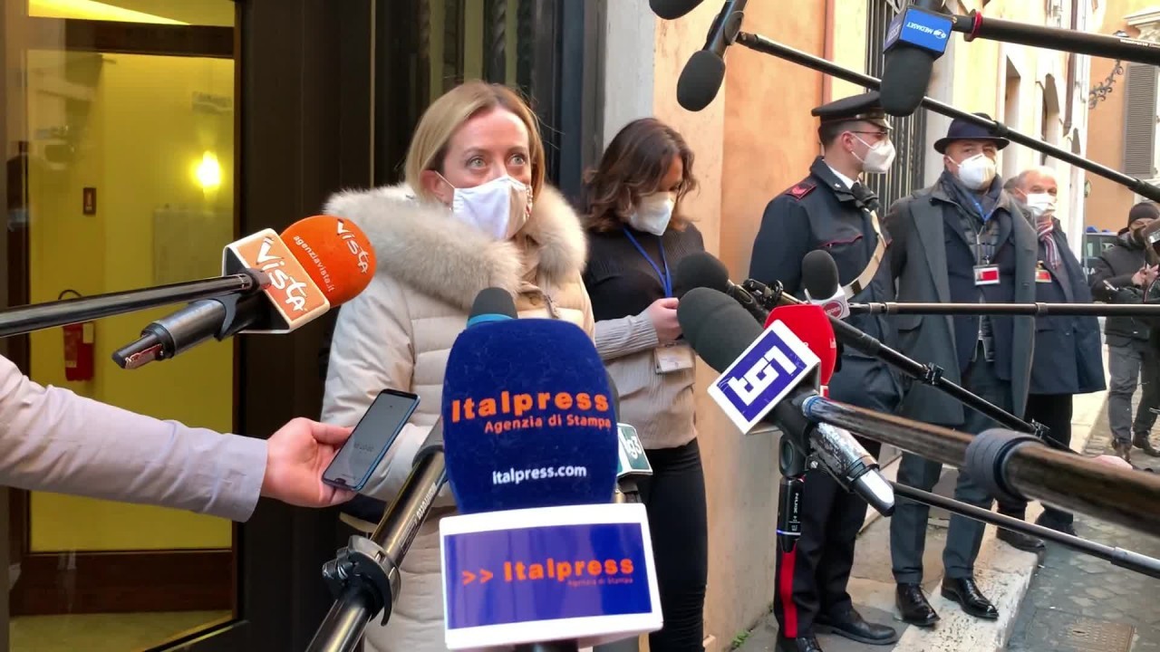 “Si conferma una compattezza sostanziale del centrodestra, che domani si presenterà compatto al Quirinale. Vogliamo dimostrare che c’e’ una alternativa e che se si consentisse di dare la parola agli italiani saremmo in grado di dare un governo solido”. Lo ha detto la leader di Fratelli d’Italia, Giorgia Meloni, al termine del vertice del centrodestra.