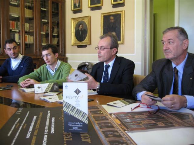 Il Comune di Trevi invita, mercoledì 28 ottobre alle ore 11 presso la Sala della Biblioteca del Palazzo della Provincia di Perugia in piazza Italia, alla conferenza di presentazione della terza edizione di “Festivol – Trevi tra olio, musica, arte e papille”. La manifestazione, che si svolgerà a Trevi il 7 e 8 novembre 2009, con l'intento di festeggiare l'olio nuovo è anche inserita all'interno di “Frantoi Aperti 2009”. Con questo evento si vuole valorizzare un territorio e le sue peculiarità paesaggistiche, ambientali e naturalistiche, oltre a quelle legate alle eccellenze alimentari e ai beni culturali. Per due giorni la natura, gli ulivi, l'olio, il sedano nero, gli antichi sapori, l'arte e la musica si fonderanno e si confonderanno. Nel corso della conferenza stampa verranno presentate tutte le iniziative in programma.