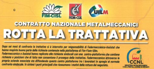 Interrotta la trattativa sul rinnovo del contratto nazionale di lavoro dei metalmeccanici. Fim, Fiom e Uilm giudicano inaccettabile la contro-piattaforma presentata da Federmeccanica e Assistal: “Respinte le richieste sugli aumenti di salario, iniziative fumose per il premio di risultato, nessuna disponibilità a regolare l’utilizzo dei contratti precari attraverso il Contratto nazionale. Per l’orario di lavoro nessuna disponibilità a ridurre l’orario di lavoro e a regolamentare lo smart working, come nessuna disponibilità a riconoscere permessi per conciliare tempi di vita e di cure dei figli e dei genitori. Nella piattaforma poi nessuna garanzia economica e occupazione esisterebbe per i lavoratori in caso di cambio di appalto”.