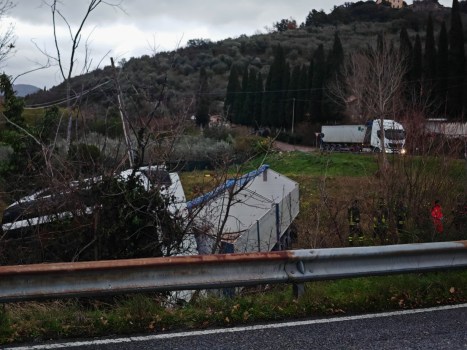 Secondo quanto ricostruito, il conducente del camion stava percorrendo la strada in direzione Spoleto quando in un tratto rettilineo ha perso il controllo del mezzo pesante a causa di un malore, finendo nella scarpata poco prima del curvone che porta allo svincolo nord. A dare l’allarme un collega camionista che lo seguiva con un altro mezzo. Sul posto i vigili del fuoco, il personale del 118 ed i carabinieri. Purtroppo il camionista è deceduto. Si tratta di Tito Scapeccia, 58enne di Nocera Umbra e residente a Valtopina, molto conosciuto nel territorio. La notizia della sua morte si è diffusa nel corso della mattinata e sta destando profondo cordoglio.