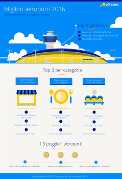 Infine, una nota sulla classifica vista “al contrario”: ci riferiamo quindi ai dieci peggiori aeroporti del mondo, sempre secondo le preferenze espresse dagli utenti di eDreams. Tra questi purtroppo figura anche uno scalo italiano, settimo tra quelli meno apprezzati dai viaggiatori. Il triste primato spetta invece all’aeroporto di Berlino Schonefeld, seguito a ruota da quello di Londra Luton e dal “La Guardia”, uno degli scali che servono New York.