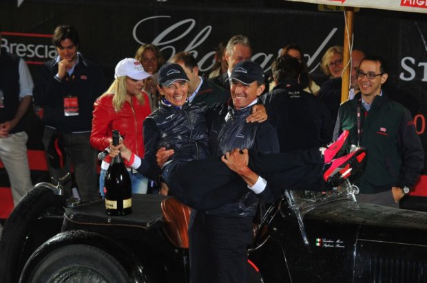 Concentrazione, entusiasmo e determinazione: è così che Giordano Mozzi e Stefania Biacca, coppia nella vita e nelle corse, sono riusciti a trionfare nella Mille Miglia a bordo di una splendida Aston Martin Le Mans del 1933. Undicesimi nell’edizione 2009, quarti nel 2010, hanno finalmente agguantato la vittoria. Un successo costruito prova dopo prova, punto su punto, in una gara al cardiopalma che ha visto il terzetto di testa viaggiare verso Brescia contendendosi ogni chilometro.