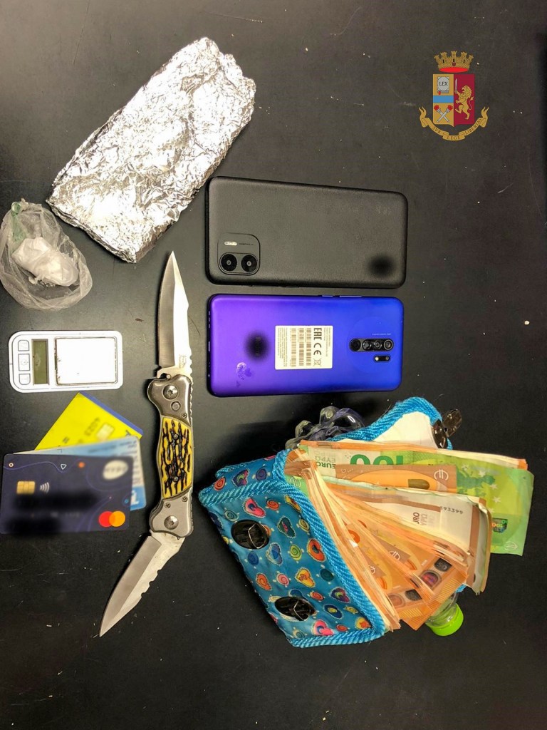 Il 37enne, visibilmente agitato, ha iniziato a opporre resistenza agli agenti, minacciandoli di morte. Sottoposto a controllo, gli operatori hanno rinvenuto un grosso coltello a scatto, una somma di quasi novemila euro in contanti, due telefoni cellulari e un involucro contenente sostanza stupefacente del tipo cocaina.