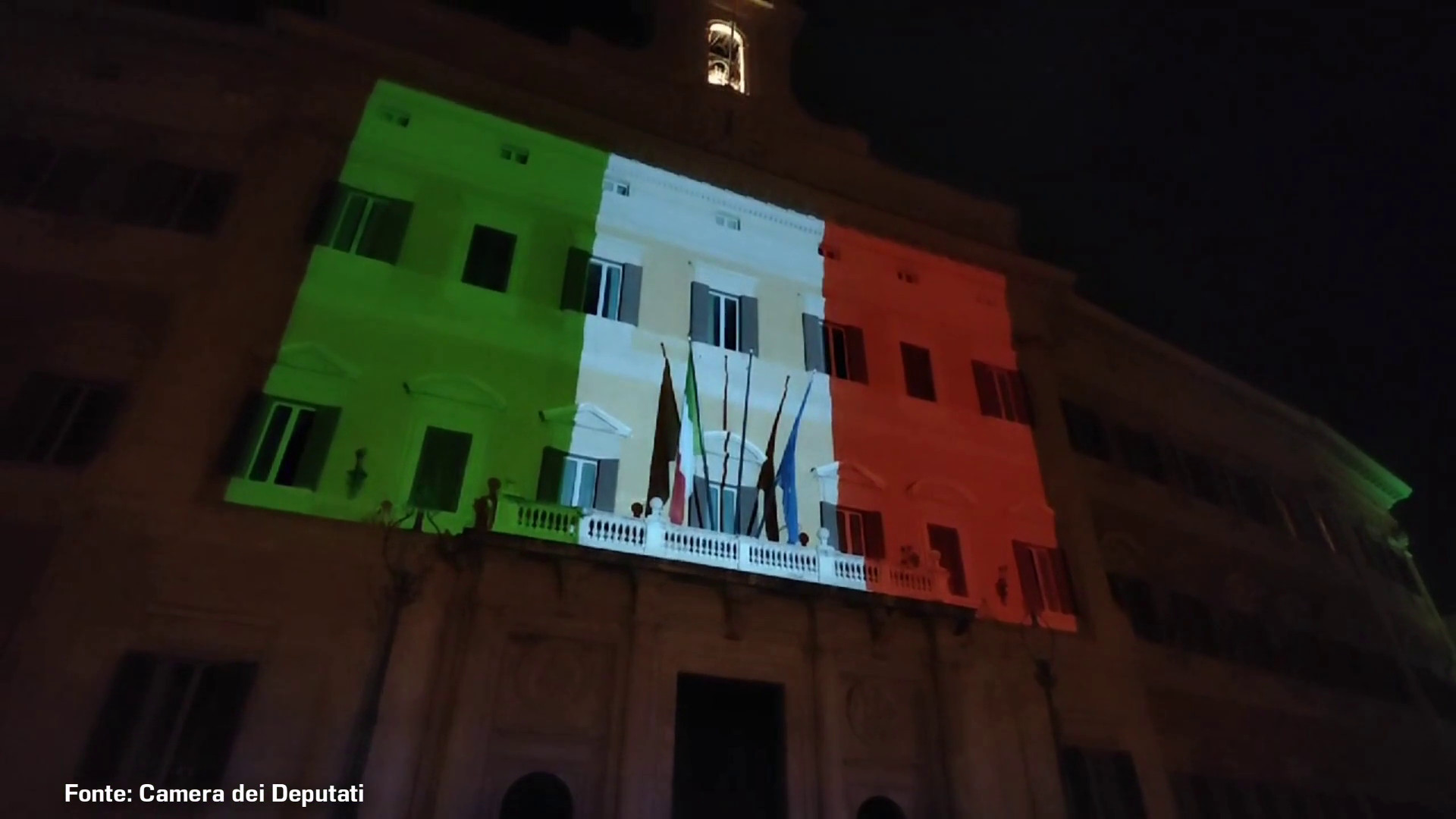 Montecitorio illuminato per la giornata dell’Unità Nazionale