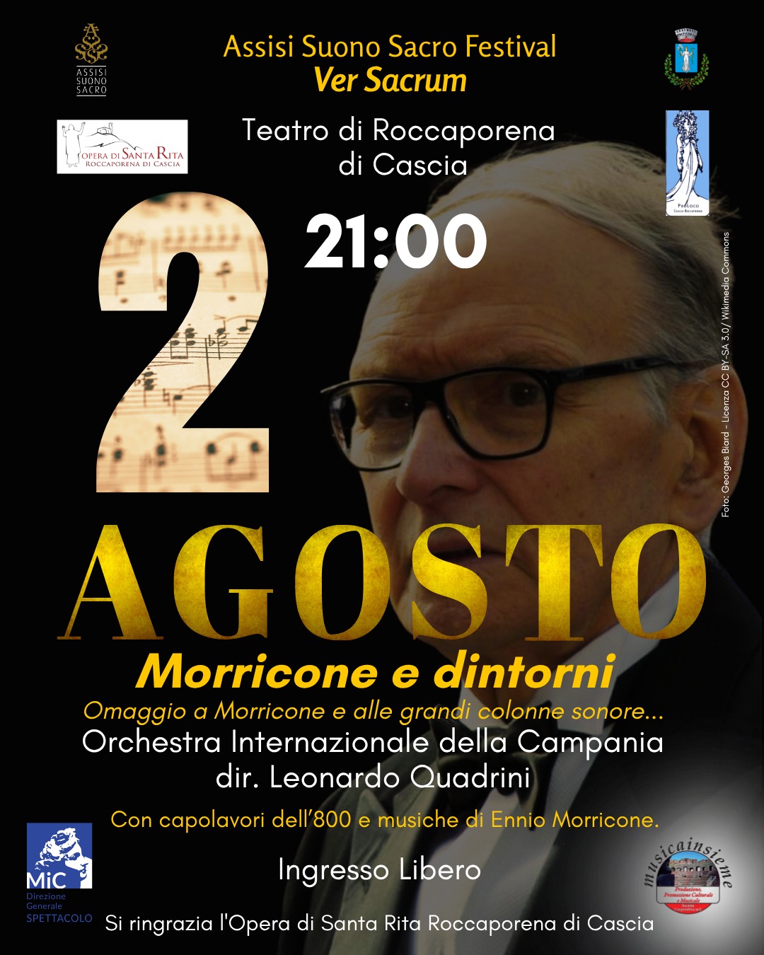 Un omaggio a Ennio Morricone nei luoghi di Santa Rita. Venerdì 2 agosto, alle 21:00, il Teatro di Roccaporena di Cascia ospita il concerto “Morricone e Dintorni”, evento a ingresso libero inserito nel programma del festival Assisi Suono Sacro – Ver Sacrum.