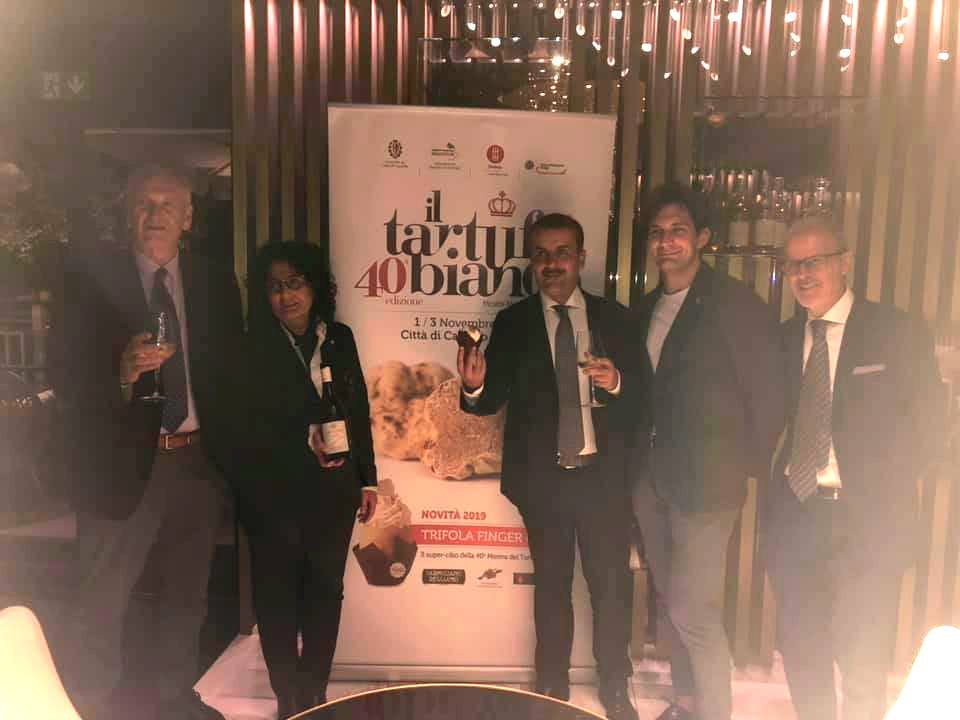 Dopo l’esordio a ‘Fico’, la 40^ Mostra del Tartufo bianco di Città di Castello si prepara ad affrontare un altro fine settimana impegnativo: nella giornata di ieri (giovedì 17 ottobre) il Comune e l’Associazione tifernate hanno incontrato la stampa nazionale nell’esclusiva terrazza panoramica con vista sul Pantheon del Divinity Terrace, a Roma, dove i Trifola Finger food, realizzati per l’occasione dallo chef Andrea Cesari, sono andati letteralmente a ruba, confermando il successo di questo “super cibo”, creato con il Parmigiano Reggiano e la Patata Deco di Pietralunga. Una prelibatezza, omaggio ai 40 anni della Mostra, apprezzaa anche dal patron di Eurochocolate Eugenio Guarducci, che l’ha voluta a Perugia alla manifestazione in corso proprio durante questo fine settimana.