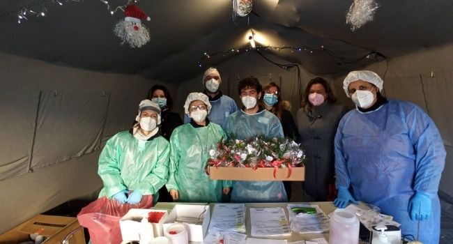 Venerdì 18 dicembre, presso l’Ospedale “San Matteo degli Infermi”, una rappresentanza dell’ Istituto Alberghiero di Spoleto ha consegnato ai medici e agli operatori sanitari stanziati sul territorio per effettuare i tamponi, 100 muffin “vestiti a festa” per manifestare la gratitudine nei confronti di chi è chiamato, in prima linea, ad affrontare la pandemia.