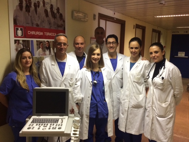 “L’ecografia toracica è una metodica non invasiva di estrema attualità, una apparecchiatura di ultima generazione utile nello studio delle patologie pleuro-polmonari -osserva il direttore della struttura, professor Francesco Puma -. La tecnica che viene attuata è in via di sviluppo sia in campo medico che chirurgico, grazie alla sua economicità, semplicità di esecuzione (anche a letto del malato) e alla sua riproducibilità. In accordo con la direzione aziendale, abbiamo individuato l’ecografo in questione dopo averne apprezzato le funzioni, ed esprimiamo sentimenti di gratitudine alla famiglia Orsini Federici che ha voluto generosamente donarla al nostro reparto, in ricordo del figlio Luca prematuramente scomparso”.