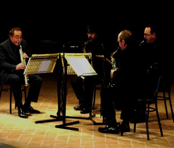 È questo il nome del quartetto che si è esibito all’Auditorium San Domenico di Foligno, composto da Gianfranco Berardi, sax soprano, Gilberto Monetti, sax contralto, Mauro Valgimigli, sax tenore, Riccardo Righi, sax baritono.Il quartetto di saxofoni si presterebbe a molte tipologie di musica, dati i vari registri propri di ognuno di questi strumenti; in questo caso ci si muove prevalentemente nell’ambito della musica classica. I musicisti hanno infatti eseguito con eleganza e precisione la Sonata di Georg Friederich Handel, il Premier Quatuor Op.53 di Singelée – primo pezzo scritto appositamente per quartetto di saxofoni, ed alcuni brani di Pedro Itturalde: Pequena Czarda, Piccola Suite e Introduzione con impeto alla gitana, ed anche chi non se ne intende ha gradito le esecuzioni: è questo il caso mio e di molti studenti, principalmente delle Scuole Medie, che hanno assistito all’esibizione. Il quartetto Saxofonia nella sua performance non ha fatto mancare qualche momento di interazione con il pubblico, elemento importante al fine della sensibilizzazione dei giovani ad una musica rara e fonte di occasioni da guadagnare con passione come quella emessa dal saxofono (Francesca Benedetti)