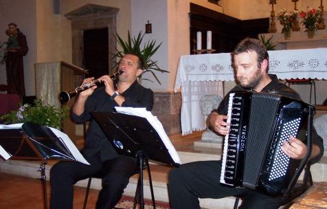Con il concerto del duo formato da Gabriele Francioli al clarinetto e Gianni Scarabottini alla fisarmonica si chiuderà la stagione estiva di concerti dell'Associazione Musikè (saranno eseguite musiche di Piazzolla, Palmer-Hughes, Fancelli, Ray Charles, Rimsky Korsakov e Gershwin). Rientrati in questi giorni da una tournèe che li ha visti raccogliere grandissimi successi in Veneto ed in Lombardia, nella suggestiva cornice del Castello Scaligero di Malcesine, sul lago di Garda e nella Sala consiliare del Comune di San Benedetto Po, in provincia di Mantova, con questo concerto, che chiuderà la serie “Ai confini della Polis 2008”, i due musicisti ci porteranno ad ascoltare bella musica in una piccola chiesa romanica arrampicata sulle pendici del Monte Martano, proprio sopra il paesino di Roselli: la chiesa di San Bartolomeo. Il concerto, come gli altri “Ai confini della Polis”, sarà preceduto da una visita guidata condotta dal Dr. Sandro Costanzi, e poi, al termine del concerto, grazie alla cordiale ospitalità e gradita collaborazione della locale Pro Loco, al pubblico intervenuto, verrà offerto un aperitivo.