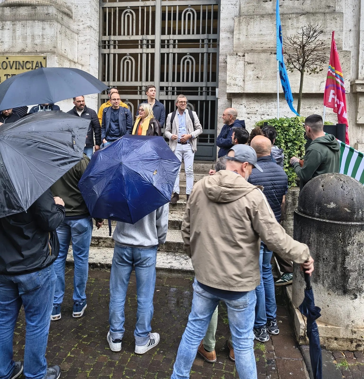 Nella stessa giornata, i lavoratori dell’azienda, che ancora ad aprile non hanno ricevuto lo stipendio, sono entrati in sciopero e si sono riuniti in presidio sotto la prefettura. A spiegare i motivi sono stati segretari territoriali di Filctem Cgil, Stefano Ribelli, Femca Cisl, Simone Sassone, e Uiltec Uil, Doriana Gramaccioni: “Nei giorni scorsi – fanno sapere – l’azienda era rimasta al buio, dati i lavori programmati sulla linea elettrica. Questo nuovo problema per la sicurezza dei lavoratori e del territorio si è determinato al termine del gasolio per i generatori che dovevano alimentare l’elettricità dello stabilimento. Lo stesso, infatti, non è stato riordinato dall’azienda lasciando i lavoratori in presidio di sicurezza alle portinerie senza corrente. Oltretutto, questo ha causato anche lo spegnimento dell’illuminazione di segnalazione della torre di abbattimento dei fumi. Questo è stato l’ennesimo segnale di difficoltà e abbandono in cui versano lo stabilimento e i lavoratori”.