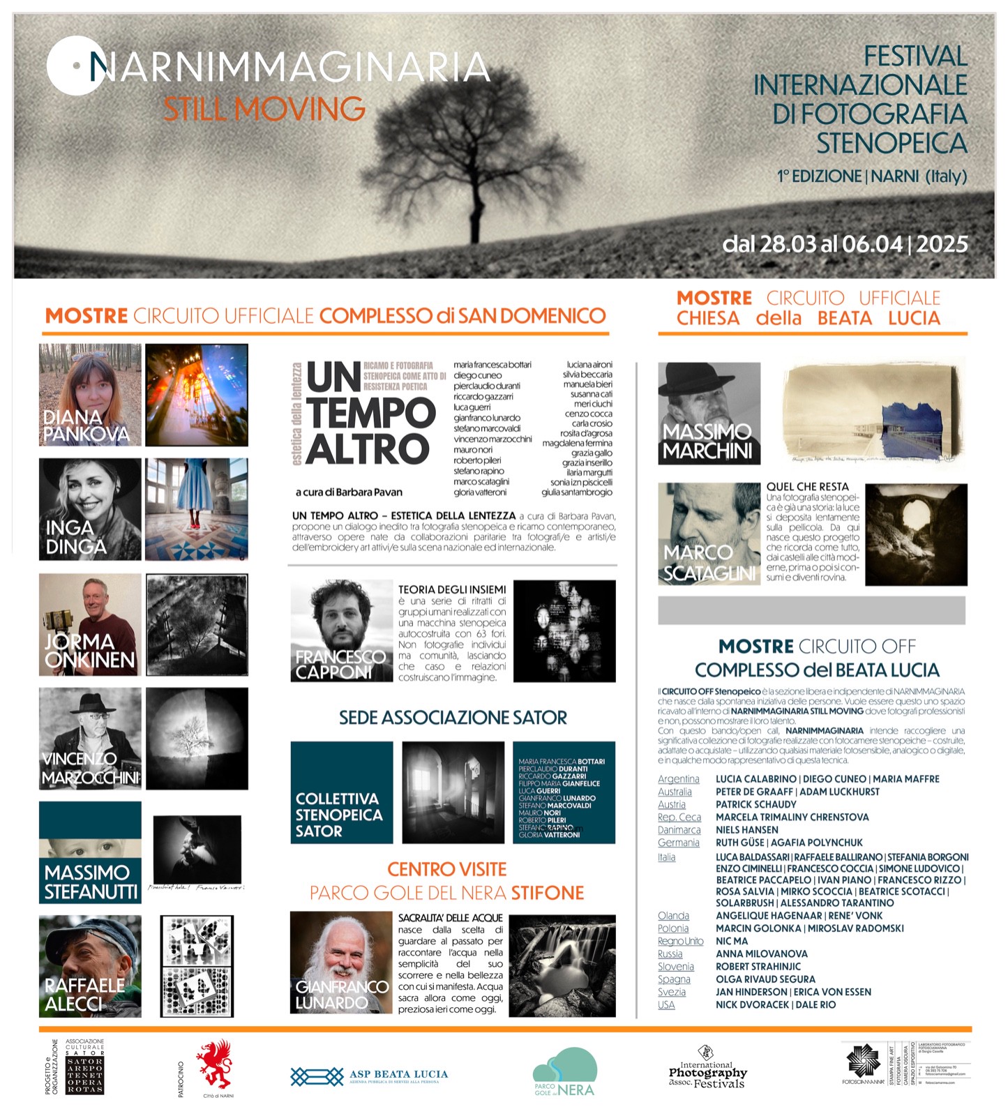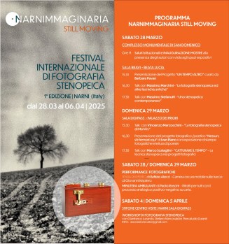 Dal 28 marzo al 6 aprile 2026, NARNIMMAGINARIA inaugura una nuova fase della propria ricerca curatoriale trasformandosi in NARNIMMAGINARIA – STILL MOVING, prima edizione del Festival Internazionale interamente dedicato alla fotografia stenopeica e alle pratiche artistiche “slow”. La manifestazione è promossa da SATOR APS e patrocinata dal Comune di Narni e da Beata Lucia Aps.