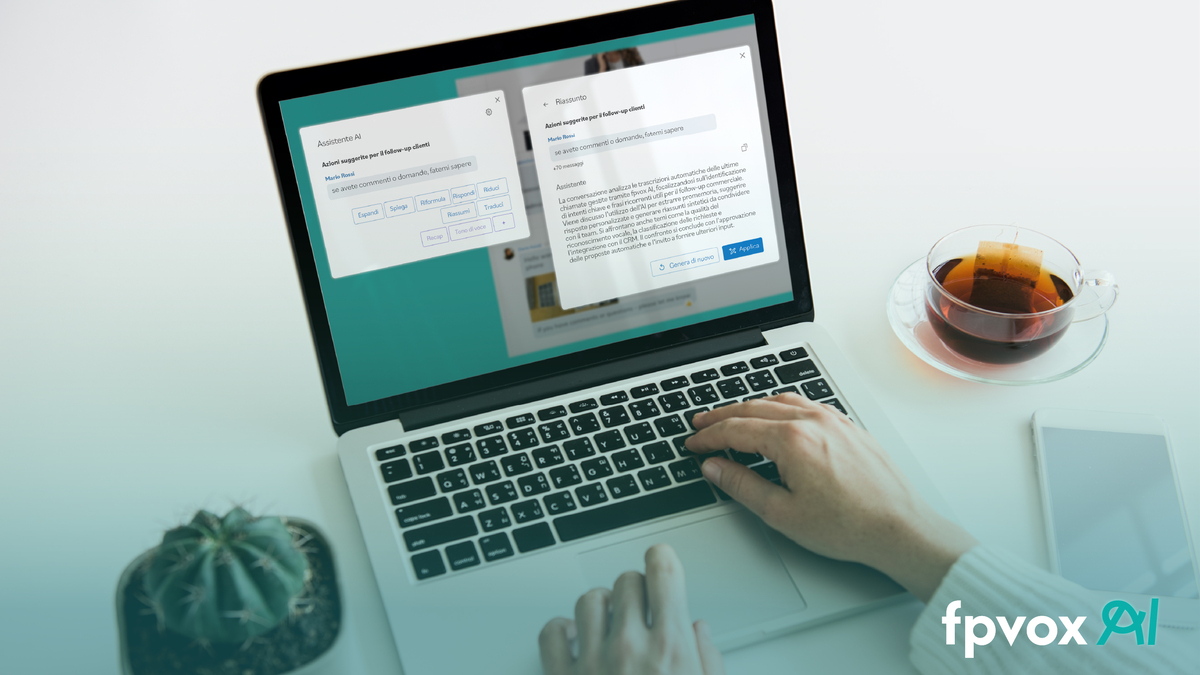 I test effettuati su un gruppo di più di 30 aziende clienti hanno evidenziato che l’utilizzo di fpvox AI ha determinato una crescita media del 24% nella produttività dei team commerciali, accompagnata da una riduzione del 32% nei tempi di attesa per i clienti.