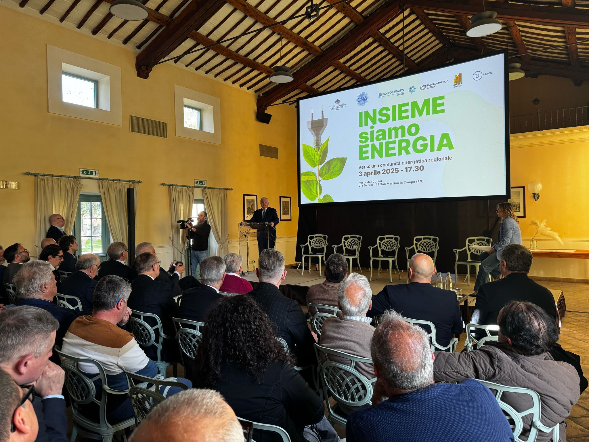 L’adesione alla CER regionale sarà aperta a tutte le imprese, ai cittadini, agli enti locali e a quelli religiosi, fino ai soggetti del terzo settore e potrà operare su tutto il territorio attraverso le cosiddette configurazioni locali che nasceranno all’interno delle cabine primarie dell’infrastruttura elettrica, alle quali spetterà la gestione dei rapporti tra produttori di energia, prosumer (soggetti che producono e consumano) e consumatori (cittadini, enti etc…). Nelle intenzioni delle associazioni promotrici c’è quella di realizzare almeno dieci impianti (e quindi dieci configurazioni locali) da 1 megawatt di energia ciascuno. Ma le possibilità di ampliamento sono enormi se si tiene conto che, dietro al progetto, ci sono ben 15 studi di fattibilità per altrettante Cer locali, realizzati nel 2024 grazie al supporto economico della CCIAA dell’Umbria, che ieri, per bocca del presidente Giorgio Mencaroni e del segretario Federico Sisti presenti all’evento, ha annunciato l’intenzione di emanare un nuovo bando per sostenere la fase di start-up delle Cer realizzate dalle imprese, che in molti territori presenteranno complessità particolari.