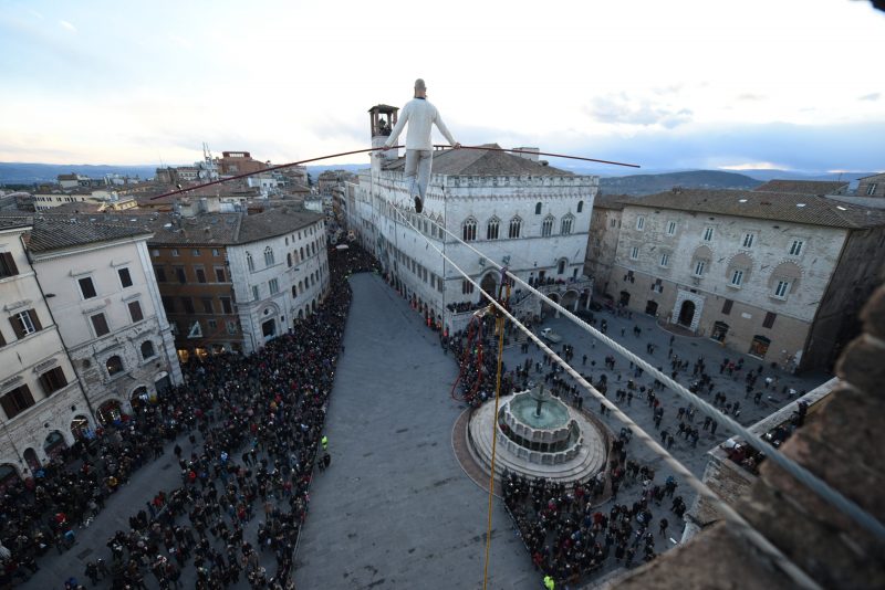 Ore 17:00, Piazza IV Novembre. Peter Pan: il funambolo Andrea Loreni in collaborazione con Gesenu