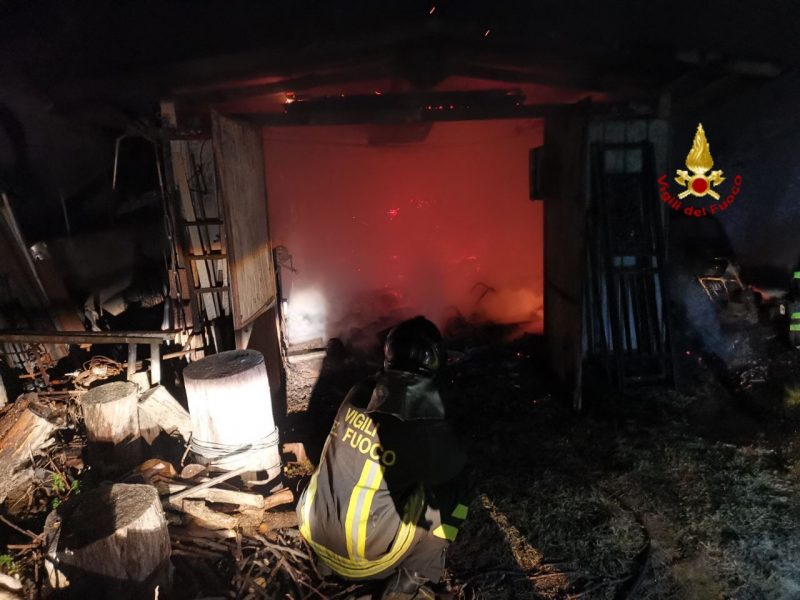 Le fiamme hanno interessato diversi attrezzi e un’auto che si trovava all’interno della struttura.